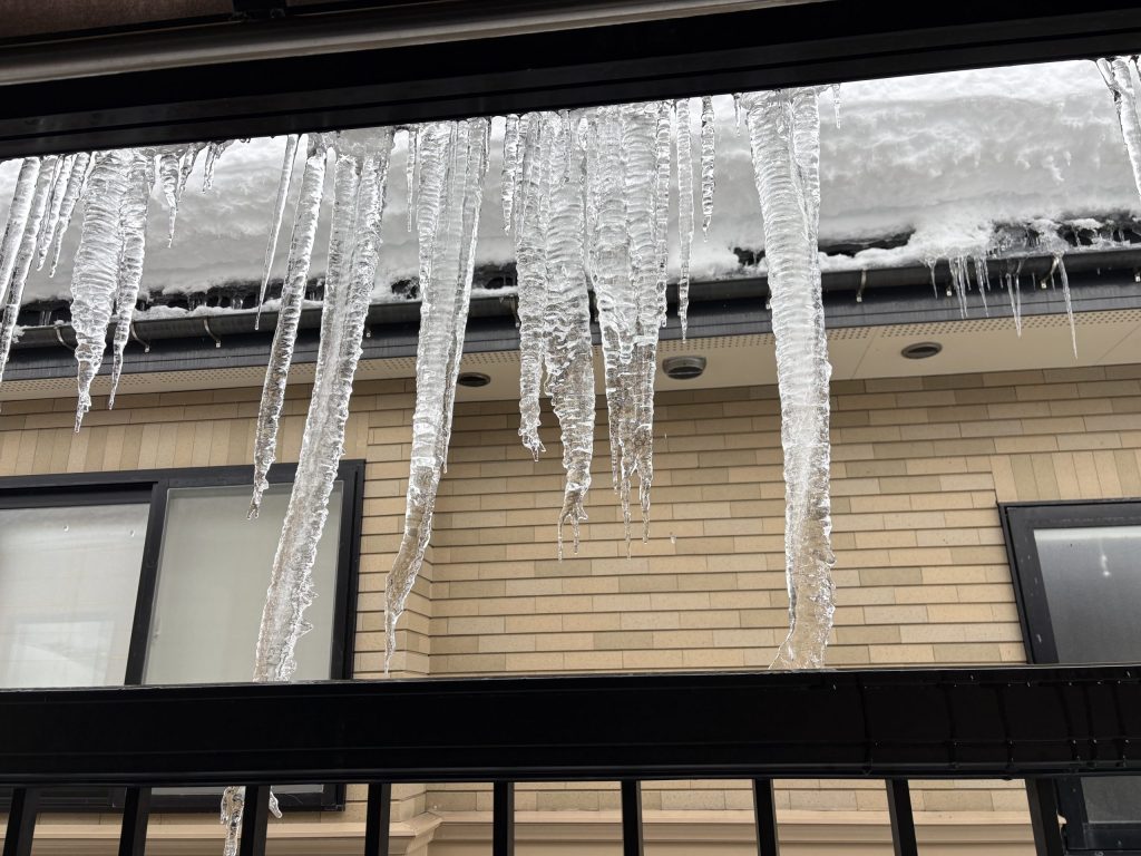 2階のベランダのつららがあまりにも立派で泣き笑いパチリ📷🥲